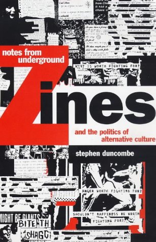 Stephen Duncombe's Notes from Underground: Zines and the Politics of Alternative Culture (Verso, 1997) is a study of the history and politics of the (American) small-scale underground publishing culture that was most prevalent in the 1970s and 1980s and peaked in the late 1990s, soon after the book's publication (when it was usurped by the Web and digital self-publishing formats like blogs).